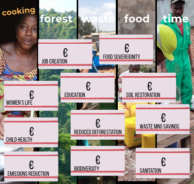 ccCASH gives clean cooking a new value. One ccCASH is equivalent to the value of preventing the damaged cause by traditional cooking methods. We look at what it would cost to achieve the same impact through reforestation, carbon offsetting, fertilizer subsidies, healthcare for women and children, waste management, and job creation.